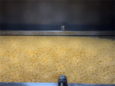 生产线上的微波隧道炉设计得很巧妙。传送带载着面包糠缓缓穿过长长的金属腔体,上方均匀排列着大功率磁控管,像卫兵似的发射微波。用户可以通过智能控制系统,来根据面包糠的湿度调节功率和烘干速度。另外设备配备排湿系统,水蒸气可以及时被抽走,不会让面包糠回潮。