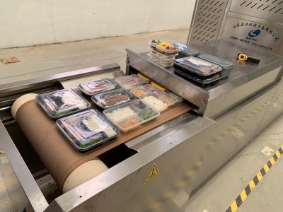 这种设备的外壳通常由不锈钢材料制成,便于清洁,也能满足食品加工环境的卫生要求。内部有微波发生装置和搅拌器,使微波分布得相对均匀一些。传送带从入口将盒饭送入,经过加热区域后从另一侧送出。